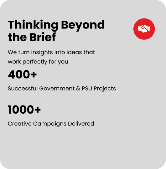 Strategic, creative, and result-driven communication solutions crafted to elevate your brand presence across Government, PSU, and Corporate sectors.